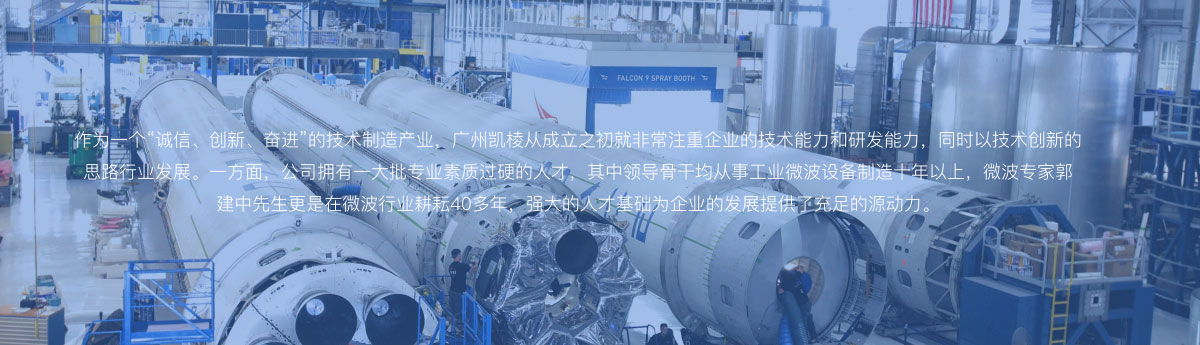 2020年年底,凱棱和中霖集團強強聯合,由中霖集團派駐數名技術人員和管理層加入凱棱團隊,在加強技術研發力量的同時改善公司的辦公生活環境、生產環境,按工業5.0的標準購置先進的生產加工設備,使凱棱的綜合實力躋身于國內工業用微波行業的前列,提供優質的產品,更好的服務于客戶,為凱棱的發展插上了騰飛的翅膀!